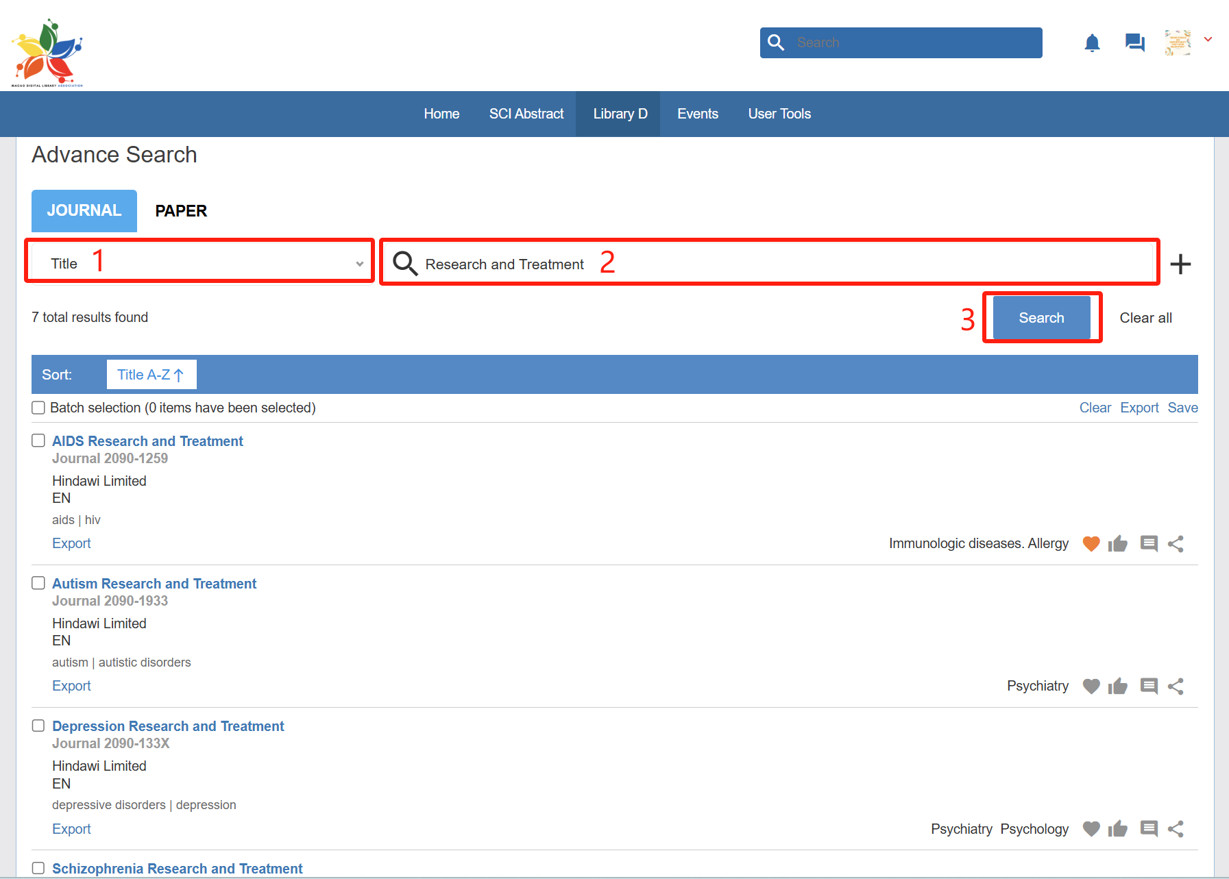 Search by journal’s name in Library D