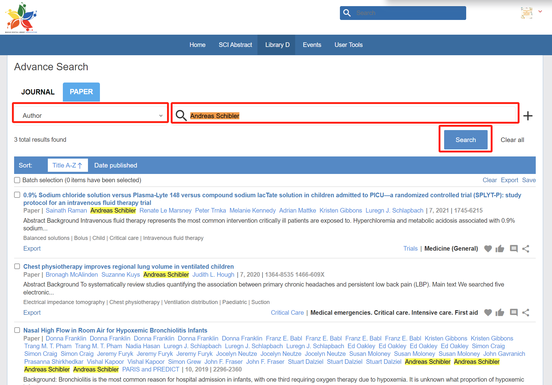 Search by ISSN/EISSN in Library D (Papers)