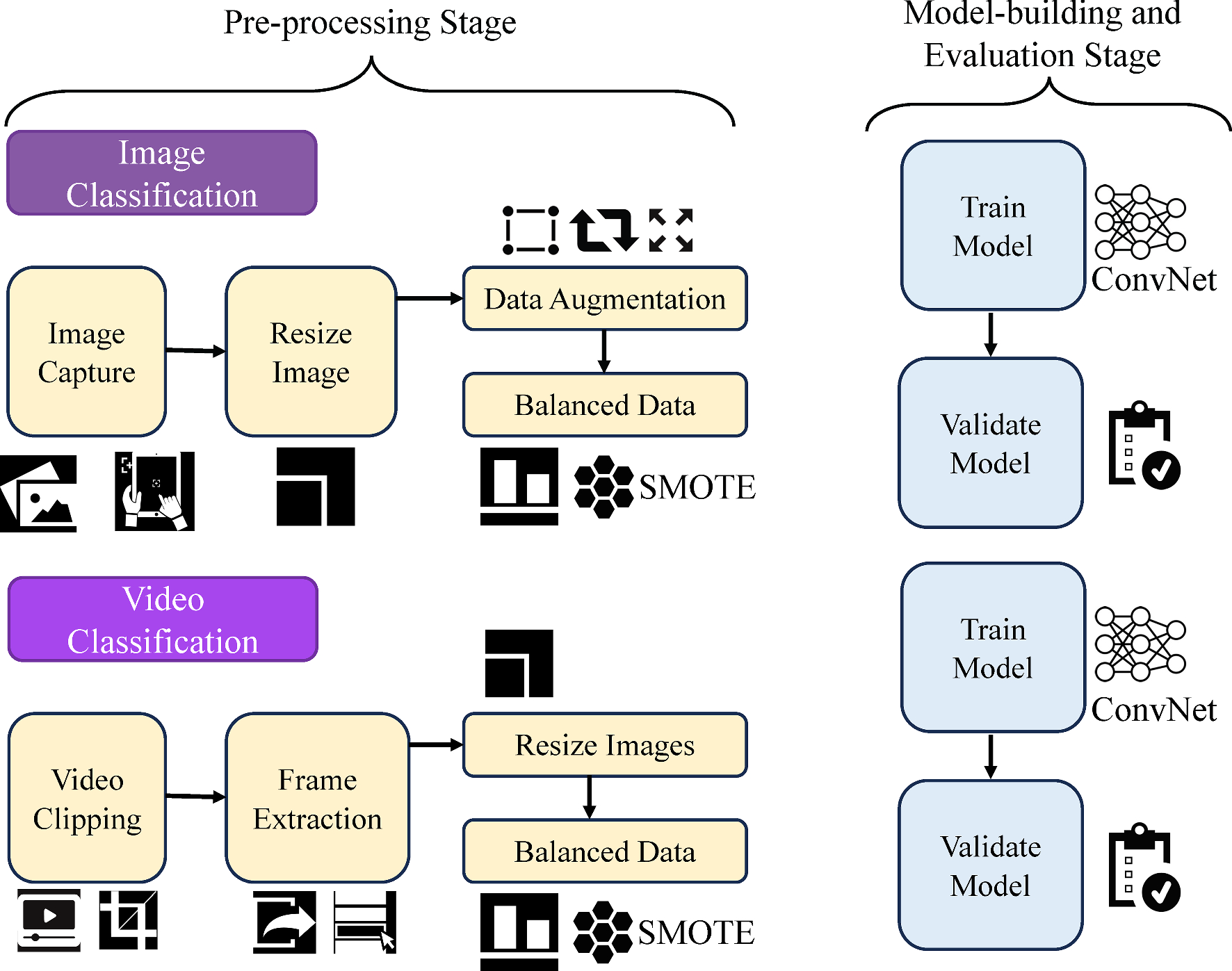Table 2 Number of subjects used in the experimentSubjects used in this study were all male, 67 with OCD (11.7 ± 1.9 years old) and 91 with normal (10.2 ± 1.3 years old). The OCD diagnosis was confirmed by senior orthopedic surgeons using radiographs of the elbow in 45° flexion in the frontal plane. Although there were various stages of OCD cases, all were regarded as the same OCD group. Two types of data were used in the experiment: movies and still images. Movies were archived in avi format, and divided into frames, which were then used as still images in bmp format. We analyzed only images that include the humeral capitellum, a common site of OCD, but excluded images of the same location, leaving only one image. Still images were also stored as bmp files, and only images including the humeral capitellum were used. Therefore, the number of images varied from subject to subject, with a minimum of 1 and a maximum of 80 images for normal subjects, and a minimum of 1 and a maximum of 48 images for OCD subjects. The size of the images varied from subject to subject, ranging from 400 to 500 pixels in both height and width. This study was conducted with the approval of the ethics committees of the Department of Orthopaedics Graduate School of Medical Science Kyoto Prefectural University of Medicine and the Graduate School of Engineering, University of Hyogo.
