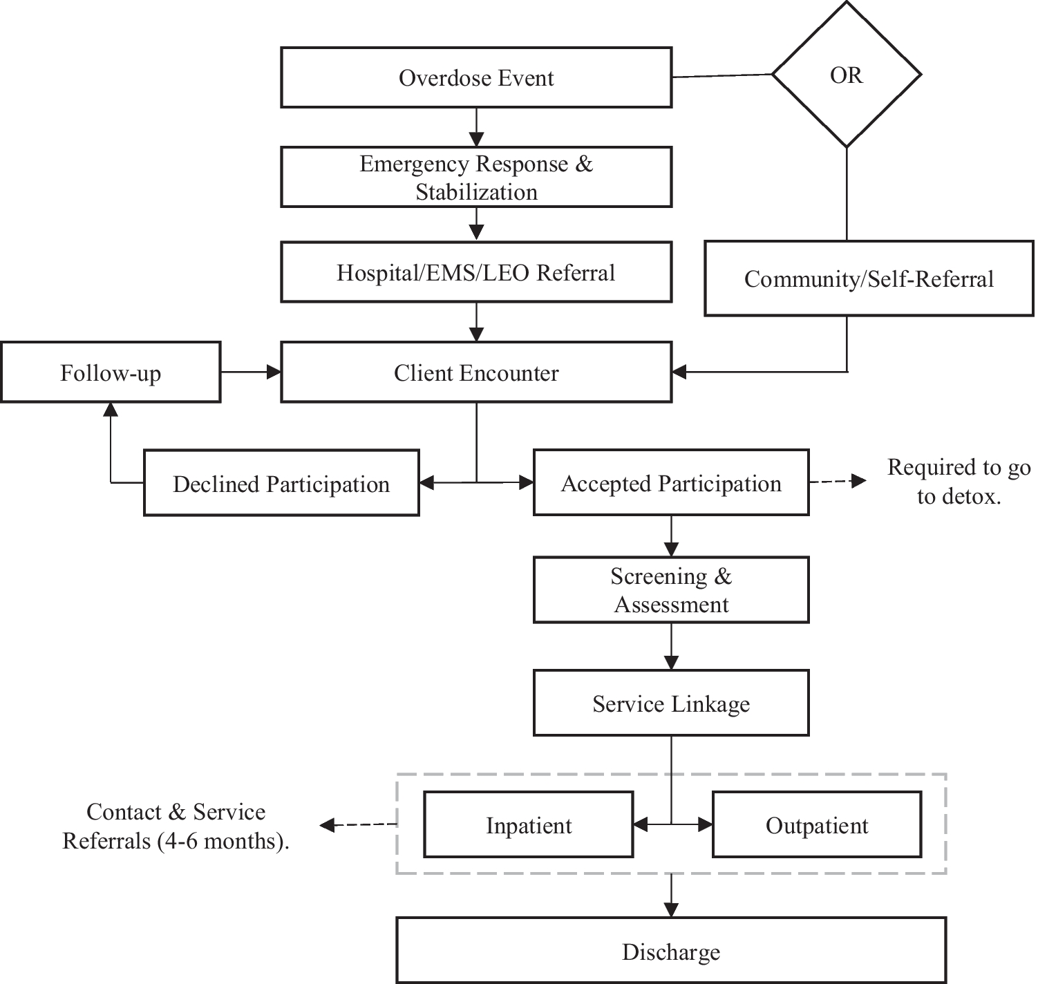 Overdose Data to Action Case Studies: Public Safety-Led Post-Overdose Outreach. Atlanta GA: Centers for Disease Control and Prevention, 2022. Available at https://www.cdc.gov/overdose-prevention/media/pdfs/OD2A-Case-Studies-Public-Safety-Led-Post-Overdose-Outreach-Programs-508.pdf. Accessed 5 April, 2024.