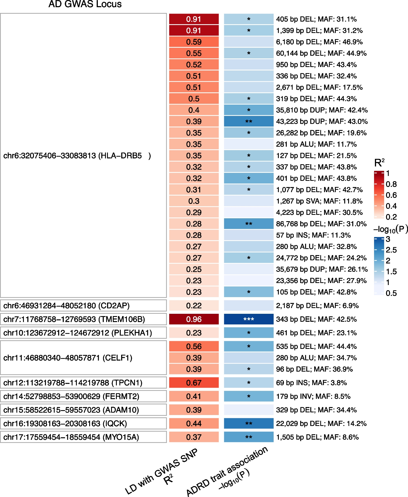 PheWAS of predicted GOF and LOF variantsWe conducted phenome-wide association studies (PheWAS) using predicted GOF and LOF missense variants in the BioMe BioBank cohort, comprising 29,477 individuals, which revealed several significant associations (Fig. 5). We compared some of the identified associations with those previously documented for known effects and predicted neutral variants, wherever possible (Additional file 1: Table S9). In summary, we observed a predicted LOF variant in the HBB gene, p.Glu7Lys (rs33930165), demonstrating associations with hereditary hemolytic anemias and sickle cell anemia (phecodes = 282 and 282.5, odds ratios [OR] = 5.63 and 6.59, P = 1.26 × 10−13 and 2.8 × 10−11). Similarly, another predicted LOF variant in HBB, p.Glu27Lys (rs33950507), showed an association with hereditary hemolytic anemias (OR = 14.8, P = 2.51 × 10−5). Notably, a previously identified LOF variant in the same gene, p.Glu7Val (rs334), exhibited significant associations with the same phenotypes, with an OR of 16.4 and a P value of 9.15 × 10−103 for hereditary hemolytic anemias and an OR of 116 with a P value of 2.04 × 10–68 for sickle cell disease. Importantly, LD analysis indicated that these three variants were independent of each other. In contrast, a predicted neutral variant, p.Ala111Pro (rs10768683), was found to be associated with a reduced risk of sickle cell anemia (OR = 0.38, P = 1.2 × 10–4).